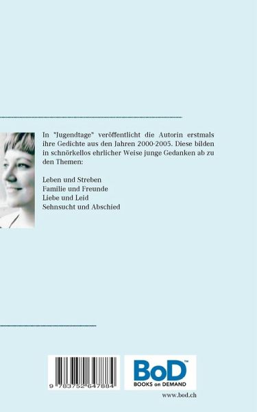 In "Jugendtage" veröffentlicht die Autorin erstmals ihre Gedichte aus den Jahren 2000-2005. Diese bilden in schnörkellos ehrlicher Weise junge Gedanken ab zu den Themen:Leben und StrebenFamilie und FreundeLiebe und LeidSehnsucht und Abschied