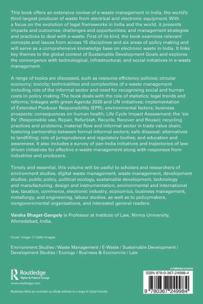 This book examines e-waste management in India. With a focus on the evolution of legal frameworks in India and the world, it presents impacts and outcomes; challenges and opportunities; and management strategies and practices to deal with e-waste.