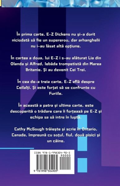 E-Z DICKENS SUPER-EROU CARTEA 4: PE GHEA¿¿ Pierderea are un mod de a schimba oamenii. Dup¿ moartea unuia dintre ei, E-Z, Lia ¿i Alfred sunt în doliu. Dar nu renun¿¿. F¿r¿ ¿tirea lor, mai exist¿ aliäi pe care nu i-au întâlnit niciodat¿, împr¿¿tiäi pe tot globul, fiecare de¿inând buc¿¿i unice de putere de care vor avea nevoie pentru a lupta împotriva a ceea ce urmeaz¿. Pentru c¿ pericolul cu care s-au luptat din umbr¿ este pe cale s¿ ias¿ complet la lumin¿. Nu doar prietenii lor, ci ¿i alte suflete lipsesc. Prinse în capcan¿. Prinse undeva între viä¿ ¿i moarte, f¿r¿ suflet. Re¿inute de aceleäi for¿e întunecate care amenin¿¿ acum s¿ distrug¿ lumea ¿i pe töi cei din ea. Cu timpul pe sfâr¿ite, E-Z trebuie s¿-¿i conduc¿ echipa. Dar mai întâi, trebuie s¿ mearg¿ ¿i s¿-i aduc¿ înapoi în Canada. Din cartierul lor general, casa lui, el ¿i ceilal¿i se adun¿, î¿i unesc for¿ele ¿i se preg¿tesc pentru o lupt¿ pentru care niciunul dintre ei nu este preg¿tit. La urma urmei, sunt doar ni¿te copii! Totüi, Furiile s-au întors din mor¿i, iar o tr¿dare va fi curând dezv¿luit¿. Noi puteri se trezesc, adânc în E-Z ¿i echipa sa. Iar costul e¿ecului nu mai este doar personal - este global. Pierderea nu este o op¿iune. Perfect pentru cititorii care iubesc pove¿tile despre prietenie, munca în echip¿, sacrificiu, curaj ¿i ridicarea, chiar ¿i atunci când ¿ansele par prea mari pentru a fi imaginate.
