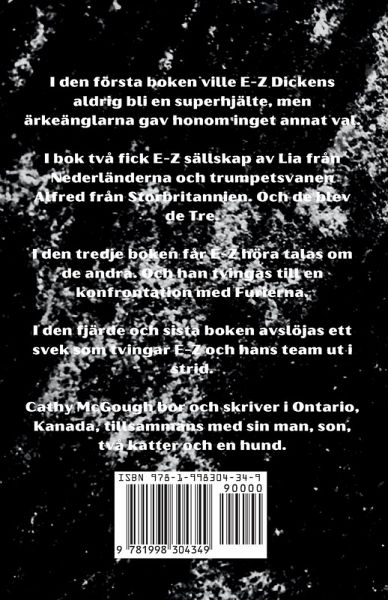 E-Z DICKENS SUPERHJÄLTE BOK 4: PÅ IS Förluster har en förmåga att förändra människor. Efter att en av deras egna har dött sörjer E-Z, Lia och Alfred. Men de ger inte upp. Utan att de vet om det finns det fortfarande allierade som de aldrig har träffat, utspridda över hela världen, var och en med unika delar av den kraft de behöver för att bekämpa det som kommer härnäst. För faran som de har bekämpat från skuggorna är på väg att träda helt in i ljuset. Inte bara deras vänner, utan även andra själar saknas. Fångade. Fångade någonstans mellan liv och död, själslösa. Hållna av samma mörka krafter som nu hotar att slita sönder världen och alla i den. Med tiden som rinner ut måste E-Z leda sitt team. Men först måste de ta dem tillbaka till Kanada. Från deras högkvarter, hans hem, samlas han och de andra, förenar sina styrkor och förbereder sig för en strid som ingen av dem är redo för. De är ju trots allt bara barn! Furierna har dock återvänt från de döda och ett förräderi kommer snart att avslöjas. Nya krafter vaknar, djupt inom E-Z och hans team. Och kostnaden för ett misslyckande är inte bara personlig längre - den är global. Att förlora är inte ett alternativ. Perfekt för läsare som älskar berättelser om vänskap, lagarbete, uppoffringar, mod och att resa sig upp, även när oddsen verkar för stora för att kunna föreställa sig.