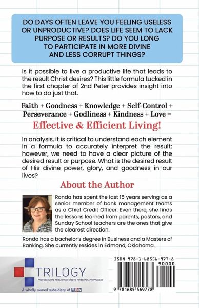 Do days often leave you feeling useless or unproductive? Does life seem to lack purpose or results? Do you long to participate in more divine and less corrupt things? Is it possible to live a productive life that leads to the result Christ desires? This little formula tucked in the first chapter of 2nd Peter provides insight into how to do just that. Faith + Goodness + Knowledge + Self-Control + Perseverance + Godliness + Kindness + Love = Effective & Efficient Living! In analysis, it is critical to understand each element in a formula to accurately interpret the result; however, we need to have a clear picture of the desired result or purpose. What is the desired result of His divine power, glory, and goodness in our lives?
