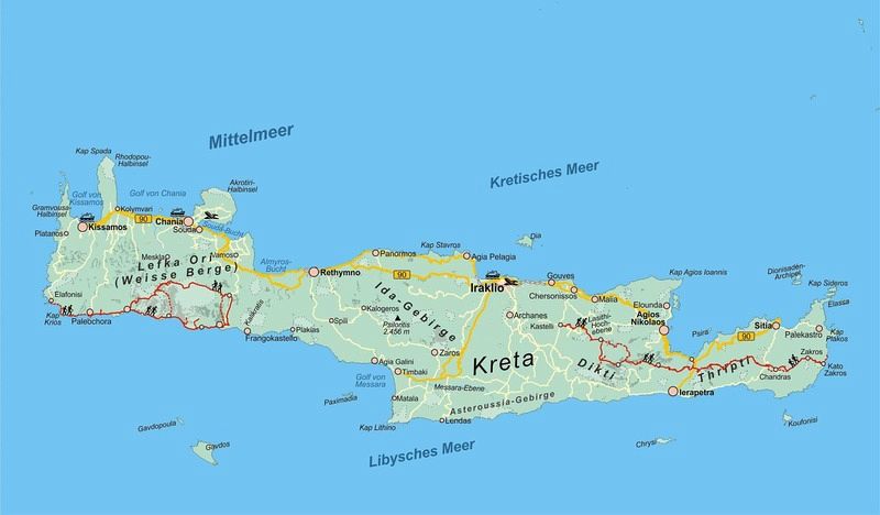 Hohe Berge, tiefe Schluchten, einsame Strände, dazu so viel Sonne wie kaum anderswo in Europa: Nicht ohne Grund ist Kreta ein beliebtes Ziel zum Wandern. Beschrieben werden 2 Teilstrecken des E4: entlang Kretas Südwestküste und durch die Lefka Ori (125 km) und durch die Präfektur Lasithi zum östlichen Ende der Insel nach Kato Zakros (145 km).