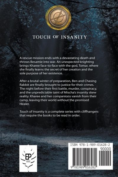 A rescue mission ends with a devastating death and throws Besamie into war. An unexpected knighting brings Kharee face-to-face with the god, Tomar, where she finally learns the secret of her creation and the sole purpose of her existence. After a brutal winter of preparation, Ben and Chasing Rabbit are finally brought to justice for their crimes. The night before their first battle, murder, conspiracy, and the unpredictable taint of Mischa's insanity skew reality. Kharee and her companions vanish from their camp, leaving their world without the promised Healer. Touch of Insanity is a complete…mehr