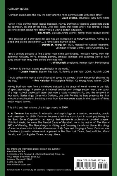 Harvey Dorfman rose from a childhood sickbed to his place of world renown in the field of sport psychology. A goalie on a national co-champion college soccer team, the coach of a high school basketball team that won a state championship, and the recipient of four World Series rings (three with Oakland, one with Florida), he here presents his final anecdotal recollections, including those from fourteen years spent in the dugouts of three major league teams. This third and last volume of a trilogy closes in 2010. Cover Photo by Bill Gozansky -- billgozansky.com/contact.asp