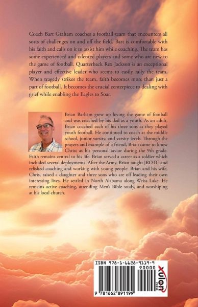 Coach Bart Graham coaches a football team that encounters all sorts of challenges on and off the field. Bart is comfortable with his faith and calls on it to assist him while coaching. The team has some experienced and talented players and some who are new to the game of football. Quarterback Rex Jackson is an exceptional player and effective leader who seems to easily rally the team. When tragedy strikes the team, faith becomes more than just a part of football. It becomes the crucial centerpiece to dealing with grief while enabling the Eagles to Soar. Brian Barham grew up loving the game of football and was coached by his dad as a youth. As an adult, Brian coached each of his three sons as they played youth football. He continued to coach at the middle school, junior varsity, and varsity levels. Through the prayers and example of a friend, Brian came to know Christ as his personal savior during the 9th grade. Faith remains central to his life. Brian served a career as a soldier which included several deployments. After the Army, Brian taught JROTC and relished coaching and working with young people. Brian and his wife, Chris, raised a daughter and three sons who are off leading their own interesting lives. He settled in North Alabama along Weiss Lake. He remains active coaching, attending Men's Bible study, and worshiping at his local church.