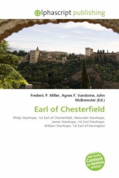 High Quality Content by WIKIPEDIA articles! Earls of Chesterfield, in the County of Derby, was a title in the Peerage of England. It was created in 1628 for Philip Stanhope, 1st Baron Stanhope. He had already been created Baron Stanhope, of Shelford in the County of Nottingham, in 1616, also in the Peerage of England. Stanhope's youngest son the Hon. Alexander Stanhope was the father of James Stanhope, 1st Earl Stanhope while his half-brother Sir John Stanhope of Elvaston was the great-grandfather of William Stanhope, 1st Earl of Harrington. Lord Chesterfield's great-great-grandson, the fourth Earl, was a politician and man of letters and notably served as Lord Lieutenant of Ireland and as Secretary of State for the Northern Department. He was succeeded by his third cousin once removed, the fifth Earl. He was the son of Arthur Charles Stanhope, son of the Reverend Michael Stanhope, grandson of the Hon. Arthur Stanhope, younger son of the first Earl. Lord Chesterfield was Ambassador to Spain and also served under William Pitt the Younger as Master of the Mint and Postmaster General.