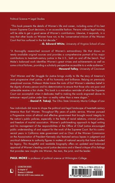 Preface Chapter 1. Earl Warren and the People's Court Part I. Childhood, Education, and Early Career Chapter 2. Coming of Age Chapter 3. The D.A. On the Waterfront Part II: Finding a National Voice Chapter 4. The War at Home Chapter 5. California's Favorite Son Part III: Earl Warren on the Bench Chapter 6. A Day That Will Live in Glory Chapter 7. All Deliberate Speed Chapter 8. The Super Chief Chapter 9. The Warren Court and the Civil Rights Movement Chapter 10. Reforming Criminal Justice Part IV. Earl Warren Off the Bench Chapter 11. An Incident in Dallas Chapter 12. The Warren Commission and the Kennedy Assassination Part V. Conclusion Chapter 13. The End of the Warren Court Chapter 14. The Legacy of Earl Warren Bibliography About the Author