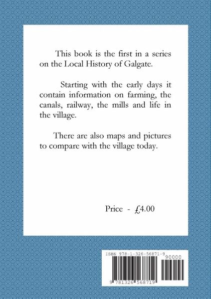 A local history booklet on the village of Galgate from the 12th Century to 1890. The early beginnings of a hamlet growing into a village with silk mill and cotton mill, canal, railway, new road, schools, farms, shops, public houses and new people from all over coming to work at Galgate.