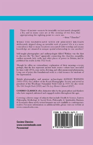 These¬-if ancient-seem to be invariably on (not merely alongside) a ley, and in many cases are at the crossing of two leys, thus appropriating the sighting point to a new use. -from "Churches" Were the significant sites of ancient Britain deliberately aligned along an invisible web of power? Or is it a mere coincidence that so many locations associated with worship and arcane knowledge are situated in unique spatial relationship to one another? Self-taught photographer and anthropologist Alfred Watkins was the first to discover the "ley lines" apparently connecting the churches, megaliths, earthen mounds, holy wells, and other places of power in Britain, and he published his results in this 1922 book. Though he offers no extraordinary explanation of their meaning-except, perhaps, that the leys represent ancient trade routes-others have associated ley lines with UFOs, crop circles, dowsing, and other paranormal phenomena. Long out of print, this foundational work is a vital resource for students of the supernatural. British photographer and amateur archaeologist ALFRED WATKINS (1855-1935) was a fellow of the Royal Photographic Society and served as president of the Woolhope Naturalists' Field Club in 1919. He also wrote The Old Straight Track (1925) and The Ley Hunter's Manual (1927).