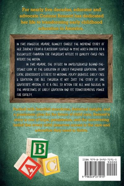 For nearly five decades, educator and advocate Corinne Bennett has dedicated her life to transforming early childhood education in America. In this powerful memoir, Bennett shares the inspiring story of her journey from a classroom teacher in 1970s North Dakota to a relentless champion for children's access to quality child care across the nation. Bennett's path was not an easy one. As a young teacher and mother, she recognized a critical gap in child care services in North Dakota-one that was impacting children, families, and the future of education. What started as a desire to better serve her own students quickly blossomed into a career-long mission to advocate for all children. From navigating the political landscape of local and state government to pushing for funding on Capitol Hill, Bennett faced and overcame countless obstacles with courage and determination. In this memoir, she offers an unprecedented behind-the-scenes look at the evolution of early childhood education, from local grassroots efforts to national policy debates. Early Care & Education for All Children is not just the story of one educator's mission; it is a call to action for all who believe in the importance of early education and its transformative power for society. Packed with heartfelt anecdotes, historical insight, and a passionate plea for the future of child care, Bennett's story is one of hope, persistence, and the unwavering belief that every child deserves access to the care and education they need to thrive. Buy Early Care & Education for All Children now to be inspired by one woman's remarkable journey-and learn how we can all make a difference in the lives of children everywhere.