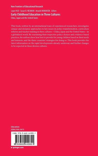 This book, written by an international team of experienced researchers, investigates unique and dynamic approaches to key issues in policy transformation, curriculum reforms and teacher training in three cultures - China, Japan and the United States - in a globalized world. By examining their respective policy choices and evidence-based practices, the authors show how best to provide for young children based on their needs and interests, and the three countries' strategies for doing so. This book provides the latest information on the rapid developments already underway and further changes to be expected in these diverse cultures.