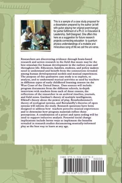 Viewing the cultures of four different types of West Coast early learning environments in the United States through the eyes of the teachers themselves, variables important to lifelong evolution of musical talents and the metacognitive benefits of music and movement will be explored and synthesized. Brain-based research in recent years has revealed just how important musical experiences in early life might be to establishing healthy and holistic patterns of learning (Louv, 2005, 2008; NIH, 2012; Nager & Shapiro, 2000; Restak, 2004, 2005). By analyzing and synthesizing theories of open systems with ecological systems theories, multiple intelligences theories, and theories about the innate force of inner motivation and the power of movement and musically informed play, a new lens or world view can emerge to aid in understanding and utilizing holistic learning.