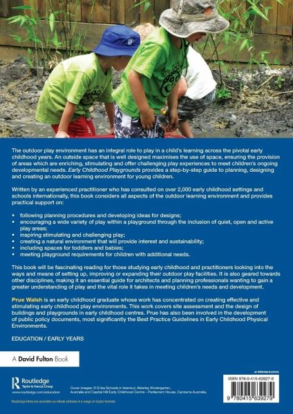 The outdoor play area in an early years or primary setting has an integral role to play in a child's learning. An outside space that is well designed allows for enriching, stimulating and challenging play experiences that meet children's developmental needs. Early Childhood Playgrounds provides a step-by-step guide to planning, designing and creating an outdoor learning environment for young children. Written by an experienced practitioner that has consulted on over 1800 early childhood settings and schools internationally, the book considers all aspects of the outdoor learning environment and provides practical support on: * planning procedures and ideas for designs; * creating different areas such as a quiet area, sandpits, water play, gardens and an active area; * spaces for toddlers and babies; * playground needs for children with additional needs; * appropriate equipment, resources and storage. This book will be fascinating reading for those studying early childhood and practitioners looking to set up, improve or expand their outdoor play facilities, as well as architects and planning professionals.