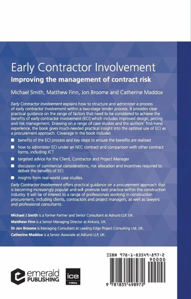 Early Contractor Involvement explains how to structure and administer a process of early contractor involvement within a two-stage tender process. It provides clear practical guidance on the range of factors that need to be considered to achieve the benefits of early contractor involvement (ECI).