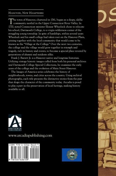 The town of Hanover, chartered in 1761, began as a sleepy, idyllic community nestled in the Upper Connecticut River Valley. In 1770, noted Connecticut minister Eleazar Wheelock chose to relocate his school, Dartmouth College, to a virgin wilderness corner of the struggling young township. In spite of hardships, within several years Wheelock and his small college had taken root on the Hanover Plain, joining together with the local community that would come to be known as the "Village at the College." Over the next two centuries, the college and the village would grow together in triumph and tragedy, rich in history and events, to become a special place revered by generations of alumni and residents alike.