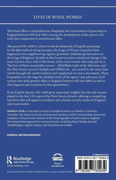 Early English Queens, 850-1000 gives important insights into the role women played in the first 150 years of the West Saxon dynasty, offering a compelling narrative that will appeal to students and scholars of early medieval England and royal studies.