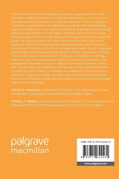 This work examines the cognitive capacity of great apes in order to better understand early man and the importance of memory in the evolutionary process. It synthesizes research from comparative cognition, neuroscience, primatology as well as lithic archaeology, reviewing findings on the cognitive ability of great apes to recognize the physical properties of an object and then determine the most effective way in which to manipulate it as a tool to achieve a specific goal. The authors argue that apes (Hominoidea) lack the human cognitive ability of imagining how to blend reality, which requires drawing on memory in order to envisage alternative future situations, and thereby modifying behavior determined by procedural memory. This book reviews neuroscientific findings on short-term working memory, long-term procedural memory, prospective memory, and imaginative forward thinking in relation to manual behavior. Since the manipulation of objects by Hominoidea in the wild (particularly in order to obtain food) is regarded as underlying the evolution of behavior in early Hominids, contrasts are highlighted between the former and the latter, especially the cognitive implications of ancient stone-tool preparation.