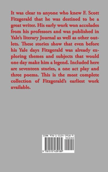 It was clear to anyone who knew F. Scott Fitzgerald that he was destined to be a great writer. His early work won accolades from his professors and was published in Yale’s literary Journal as well as other outlets. These stories show that even before his Yale days Fitzgerald was already exploring themes and subjects that would one day make him a legend. Included here are seventeen stories, a one act play and three poems. This is the most complete collection of Fitzgerald’s earliest work available.
