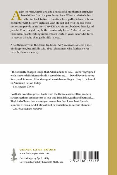 Adam Jenrette, thirty-one and a successful Manhattan artist, has been hiding from his past for too long. When a relative's death calls him back to North Carolina, he is pulled into an intense encounter with his own eighteen-year-old self and the two most important people in his life-- Cary Kinlaw, his best boyhood friend, and Jane McCrae, the girl they both, disastrously, loved. And as he relives one incredible, heartbreaking summer from thirteen years before, he dares to recover what he changed his life to lose... A Southern novel in the grand tradition, Early from the Dance is a spellbinding story, beautifully told, about characters who fix themselves indeliably in our memory and the kind of passion that transforms lives.