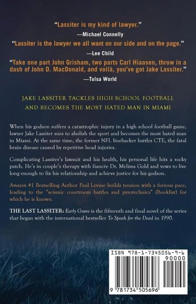 When his godson suffers a catastrophic injury in a high school football game, lawyer Jake Lassiter sues to abolish the sport and becomes the most hated man in Miami. At the same time, the former NFL linebacker battles CTE, the fatal brain disease caused by repetitive head injuries. Complicating Lassiter's lawsuit and his health, his personal life hits a rocky patch. He's in couple's therapy with fiancée Dr. Melissa Gold and vows to live long enough to fix his relationship and achieve justice for his godson.