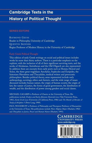 This edition of early Greek writings on social and political issues includes works by more than thirty authors. There is a particular emphasis on the sophists, with the inclusion of all of their significant surviving texts, and the works of Alcidamas, Antisthenes and the Old Oligarch are also represented.