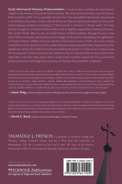 Early Interracial Oneness Pentecostalism is a look at what is perhaps the least-known chapter in the history of American Pentecostalism. The study of the first thirty years of Oneness Pentecostalism (1901-31) is especially relevant due to its unparalleled interracial commitment to an all-flesh, all-people, counter-cultural Pentecost. This in-depth study details the lives of its earliest primary architects, including G. T. Haywood, R. C. Lawson, J. J. Frazee, and E. W. Doak, and the emergence of Oneness Pentecostalism and its flagship organization, Pentecostal Assemblies of the World. This is a one-of-a-kind history of Pentecostalism, through the lens of the Jesus' Name movement and the interracial struggles of the period, interlinking the significance of Charles Parham, William Seymour and the Azusa Street revival, COGIC, the newly formed Assemblies of God, and dozens of the earliest Oneness organizational bodies. Exploration of the significance of the role of African American Indianapolis leader G. T. Haywood is central, as are the development of the movement's key centers in the United States and the ultimate loss of interracial unity after more than thirty years. These crucial events marked, indelibly, the U.S., the global missionary, and the autochthonous expansion of Oneness Pentecostalism worldwide.