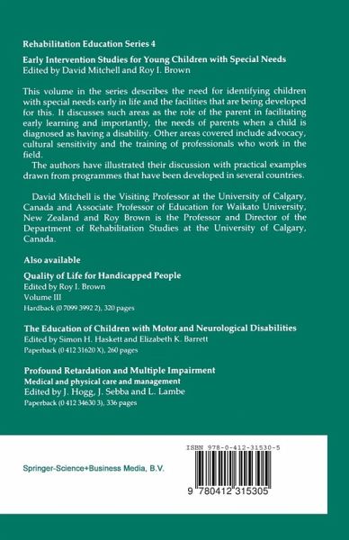 This is the fourth volume in the Rehabilitation Education Series. It is the first volume tobe co-edited and follows a volume on quality of life. The first few years of a child' s life sets the pattern for many issues associated with quality of life. Although intervention may at later stages enhance quality oflife, it is in these first years thatthe attitudes and systems of society can have long lasting effects. The early years are increasingly seen as the province of the educator and in children with disabilities, special education. They are already recognized as the province of the health professional. Here we attempt to take a different line re-inforcing the idea that child and family are the interacting system we serve. The needs are often multidisciplinary, but we need to recognize context as the critical marker. Thus assessment needs tobe linked to program mes and therefore programmes themselves have tobe evaluated, and environmental issues underlined. In particular the contribu tion from those with sociological interests are noted. Intervention, whether it be psychological or educational, is frequently and ideally placed in the hands of parents or the nearest caregiver. The professional becomes the processor ever mindful of the context in which needs and goals are experienced. These issues are basic to the issues of quality of life. D.R.M. R.I.B.