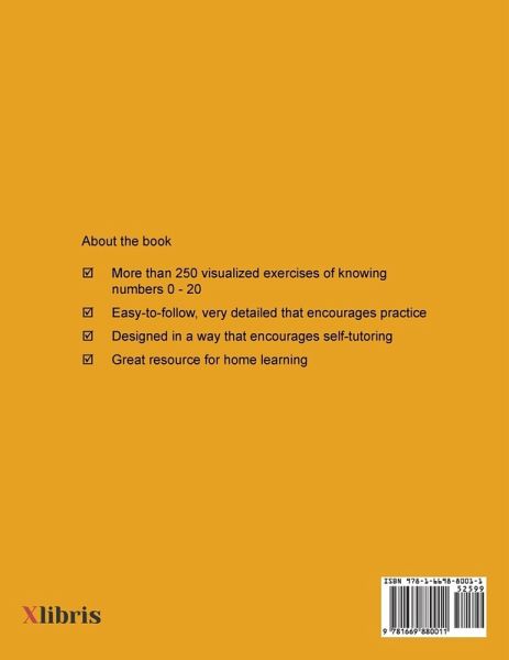 About the book More than 250 visualized exercises of knowing numbers 0 - 20 Easy-to-follow, very detailed that encourages practice Designed in a way that encourages self-tutoring Great resource for home learning