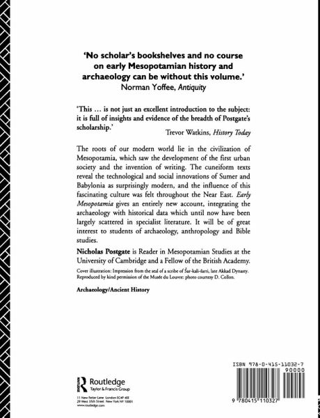 The roots of our modern world lie in this early civilisation, which saw the first urban society and the invention of writing. Postgate uses both historical and archaeological data to reveal this society's social and technological innovations.