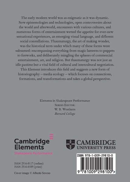 This Element introduces thaumaturgy, the art of making wonder, encompasses everything from magic lanterns to puppets to fireworks, and deliberately mingling the spheres of commercial entertainment, art, and religion. It also suggests a new form of historiography-media ecology.