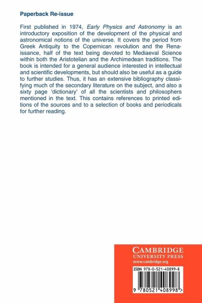The book is an introductory exposition of the development of the physical and astronomical notions of the universe. It covers the period from Greek antiquity to the Copernican revolution and the Renaissance, half of the text being devoted to medieval science within both the Aristotelian and the Archimedean traditions. The book is intended for a general audience interested in intellectual and scientific developments, but should also be useful as a guide to further studies. Thus it has an extensive bibliography classifying much of the secondary literature on the subject, and also a sixty page 'dictionary' of all the scientists and philosophers mentioned in the text. This contains references to printed editions of the sources and to a selection of books and periodicals.