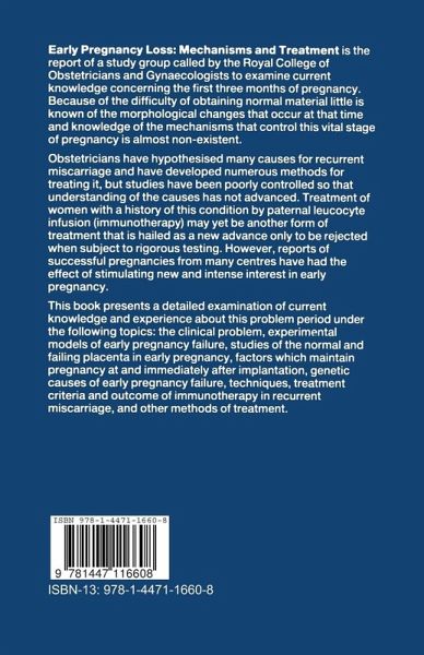 Section 1 - The Clinical Problem.- Clinical associations of recurrent miscarriage.- The epidemiology of repeated abortion.- Discussion.- A prospective study of spontaneous abortion.- Discussion.- Clinical and immunological significance of anti-phospholipid antibodies.- Discussion.- Section 2 - Experimental Models of Early Pregnancy Failure.- Anatomical and immunological aspects of fetal death in the Mus musculus/Mus caroli model of pregnancy failure.- Discussion.- Genetic aspects of the CBA × DBA/2 and B1O × B10.A models of murine pregnancy failure and its prevention by lymphocyte immunisation.- Discussion.- Effects of feto-maternal major histocompatibility differences on litter size in pigs.- Discussion.- A non-genetic development defect in trophoblast formation in the horse: immunological aspects of a model of early abortion.- Discussion.- Section 3 - Studies of the Normal and Failing Placenta in Early Pregnancy.- Placental pathology in spontaneous miscarriage.- Discussion.- Early human trophoblast.- Discussion.- The decidua in early pregnancy.- Discussion.- Early pregnancy failure: biochemical and biophysical assessment.- Discussion.- Haemostasis and fibrinolysis in human normal placentae: possible role in early pregnancy failure.- Discussion.- Section 4 - Factors Which Maintain Pregnancy at and Immediately After Implantation.- Chairman's introductory remarks.- Antigen expression by cells of the conceptus before, during and after implantation.- Discussion.- Host immunoregulatory mechanisms and the success of the conceptus fertilised in vivo and in vitro.- Discussion.- Interplay of oestrogens, progesterone and polypeptide growth factors at about the time of implantation.- Discussion.- Prostaglandins and other non-steroidal mediators at and immediatelyafter implantation.- Discussion.- Section 5 - Genetic Causes of Early Pregnancy Failure.- Is there a t complex in man?.- Discussion.- Immunogenetic factors influencing the survival of the fetal allograft.- Discussion.- The cytogenetics of spontaneous abortion in humans.- Discussion.- The biology of trophoblastic disease: complete and partial hydatidiform moles.- Discussion.- Section 6 - Techniques, Treatment Criteria and Outcome of Immunotherapy in Recurrent Abortion.- Chairman's introductory remarks.- Successes and failures of immunisation for recurrent spontaneous abortion.- Discussion.- Pregnancy outcome in couples with recurrent abortions following immunological evaluation and therapy.- Discussion.- Belgian experience with repeat immunisation in recurrent spontaneous abortions.- Discussion.- Immunotherapy in recurrent spontaneous abortion: who, how, outcome.- Discussion.- Human MHC antigens and paternal leucocyte injections in recurrent spontaneous abortions.- Discussion.- Trophoblast membrane infusion (TMI) in the treatment of recurrent spontaneous abortion.- Discussion.- Section 7 - Other Methods of Treatment.- Use of cervical cerclage in patients with recurrent first trimester abortion.- Discussion.- Early recurrent pregnancy failure: treatment with human chorionic gonadotrophin.- Discussion.- Recurrent abortion: the role of psychotherapy.- Discussion.