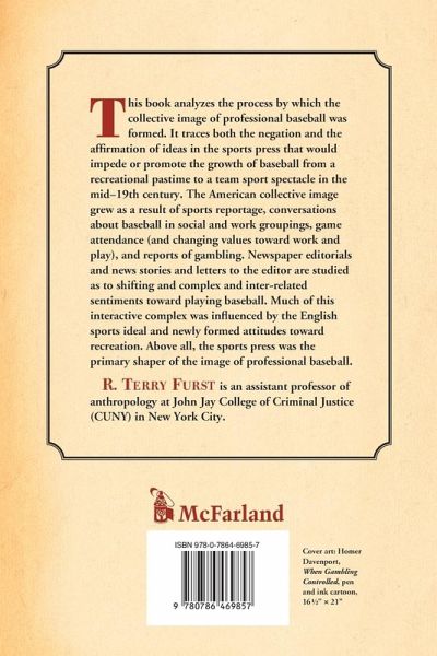 The book analyzes the process by which the collective image of professional baseball was formed. It traces both the negation and the affirmation of ideas in the sports press that would impede or promote the growth of baseball from a recreational pastime to a team sport spectacle in the mid-19th century. The American collective image grew as a result of sports reportage, conversations about baseball in social and work groupings, game attendance (and changing values toward work and play), and reports of gambling. Newspaper editorials and news stories and letters to the editor are studied as to shifting and complex and inter-related sentiments toward playing baseball. Much of this interactive complex was influenced by the English sports ideal and newly formed attitudes toward recreation. Above all, the sports press was the primary shaper of the image of professional baseball.