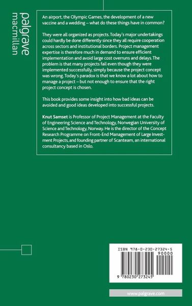 KNUT SAMSET is Professor of Project Management at the Faculty of Engineering Science and Technology, Norwegian University of Science and Technology, Norway, www.ntnu.no. He is the Founding Director of the Concept Research Programme on Front-end Management of Large Investment Projects, and Founding Director and Senior Partner of Scanteam, an international consultancy based in Oslo.