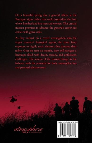 On a beautiful spring day, a general officer at the Pentagon signs orders that could jeopardize the lives of one hundred and five men and women. This crucial mission promises to advance the general's career but comes with grave risks. As they embark on a covert investigation into the target country's biological agents, the team faces exposure to highly toxic elements that threaten their safety. Over the next six months, they will navigate a landscape filled with deceit, secrecy, and unforeseen challenges. The success of the mission hangs in the balance, with the potential for both catastrophic loss and personal advancement.