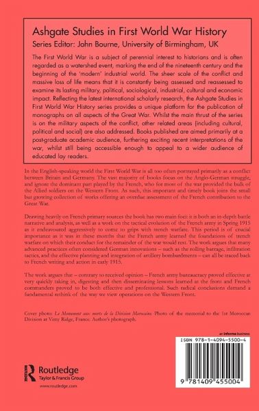 In the English-speaking world the First World War is all too often portrayed primarily as a conflict between Britain and Germany. The vast majority of books focus on the Anglo-German struggle, and ignore the dominant part played by the French, who for most of the war provided the bulk of the soldiers fighting against the central powers. As such, this important and timely book joins the small but growing collection of works offering an overdue assessment of the French contribution to the Great War. Drawing heavily on French primary sources the book has two main foci: it is both an in-depth battle narrative and analysis, as well as a work on the tactical evolution of the French army in Spring 1915 as it endeavored aggressively to come to grips with trench warfare. This period is of crucial importance as it was in these months that the French army learned the foundations of trench warfare on which their conduct for the remainder of the war would rest. The work argues that many advanced practices often considered German innovations - such as the rolling barrage, infiltration tactics, and the effective planning and integration of artillery bombardments - can all be traced back to French writing and action in early 1915. The work argues that - contrary to received opinion - French army bureaucracy proved effective at very quickly taking in, digesting and then disseminating lessons learned at the front and French commanders proved to be both effective and professional. Such radical conclusions demand a fundamental rethink of the way we view operations on the Western Front.