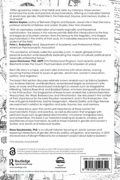 'What is extraordinary about Klara Naszkowska's edited volume is not simply its focus on the lives and work of neglected, marginalized, and yet seminal women psychoanalysts. In addition, the chapters vivify ways in which a malignant mix of misogynistic, antisemitic, fascistic, and longtime sociocultural norms both hobbled, yet also galvanized some of the greatest psychoanalytic voices of all time.'