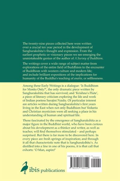 The twenty-nine pieces collected here were written over a crucial in the development of Sangharakshita's thought and expression. From the first articles with their visionary outlook, emerges the unmistakeable voice of the author of A Survey of Buddhism. The writings cover a wide range of subject matter from explorations of the entire field of Buddhism to the encounter of Buddhism with western culture and modern life; and include brilliant expositions of the implications for humanity of the Buddha's teaching of anatta, or selflessness.