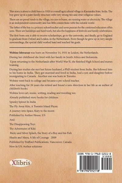 This story is about a child born in 1920 in a small agricultural village in Karnataka State, India. The boy grew up in a joint family structure with very strong ties and strict religious values. There are no paved roads in the village, no cars or buses, no running water or electricity. The village is an independent community and has little connections with the outside world. The father of the boy is a primary school teacher and saves pennies for the continued education of his sons. There are hardships and hard work but also the happiness of festivals and family celebrations. The first-born son is able to receive scholarships, go to the university, and finally, go to England to graduate from Oxford and Leiden in the Netherlands. Even though he grew up in very simple surroundings, the special child worked hard and reached his goals.