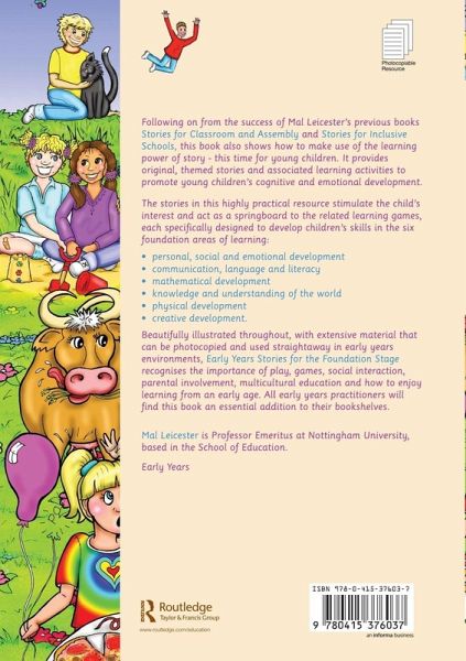 Following on from the success of Mal Leicester's previous books Stories for Classroom and Assembly and Stories for Inclusive Schools, this book shows how to make use of the learning power of story-time for young children, providing original, themed stories and associated learning activities to promote young children's cognitive and emotional development. Stories in this highly practical resource stimulate the child's interest and acts as a springboard to related learning games designed to develop children's skills in the six foundation areas of learning: personal, social and emotional development communication, language and literacy mathematical development knowledge and understanding of the world physical development creative development. Beautifully illustrated throughout, with extensive photocopiable material, this book recognizes the importance of play, games, social interaction, parental involvement, multicultural education and how to enjoy learning from an early age. All Early Years practitioners will find this book an essential addition to their bookshelves.