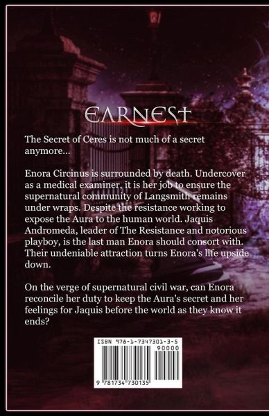 The Secret of Ceres is not much of a secret anymore... Enora Circinus is surrounded by death. Undercover as a medical examiner, it is her job to ensure the supernatural community of Langsmith remains under wraps. Despite the resistance working to expose the Aura to the human world. Jaquis Andromeda, leader of The Resistance and notorious playboy, is the last man Enora should consort with. Their undeniable attraction turns Enora's life upside down. On the verge of supernatural civil war, can Enora reconcile her duty to keep the Aura's secret and her feelings for Jaquis before the world as they know it ends?