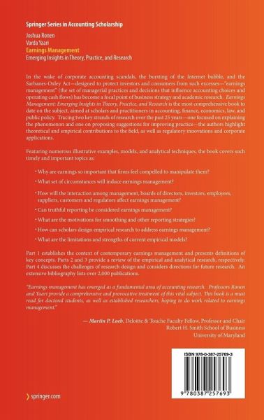 "Provides a comprehensive overview of academic research ... . suited for most types of readers, from accounting researchers to managers. Still, I envision doctoral students and more experienced accounting scholars to be the primary target audience for this book. ... In my opinion, this book is very well written and executed ... . Within its scope, this book is an accounting scholar's must-have, an interesting read providing us with not only the author's perspective on earnings management but also a very useful literature overview." (Vedran Capkun, The International Journal of Accounting, Vol. 46 (2), June, 2011)