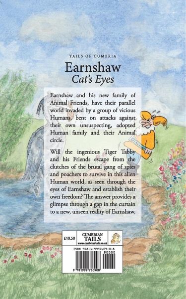 Earnshaw, the Tiger Tabby Kitten, was born into dereliction and deprivation in Salford; cast into the dark, oily waters of the Docks by a vicious Human but rescued by a kindly passer-by. Confined to a shelter for unwanted Cats, the ante-room for euthanasia, he is rescued once more, adopted by a family and settled in a house on the edge of the Lake District. The countryside was like another world. A Rabbit, Scruffy Parrot and Black Kitten are added to the household; together they need to embark on a steep learning curve of survival. Earnshaw realises that they can understand Human communication but not the reverse; however, natural cleverness and invention solves this and many other problems, creating misunderstandings and humour along the way in their parallel world as seen through the eyes of Earnshaw When the world of the Tiger Tabby and his Friends is invaded by a group of cruel, vicious Humans; survival requires teamwork, ingenuity, cunning and a determination to fight and win. They become a formidable team with help from other Animals, Birds - and a few Humans. They win the unconventional battle after many adventures, gaining confidence in their own abilities of being able to match and outwit Humans, creating their own brand of humour and gallimaufry on the way.
