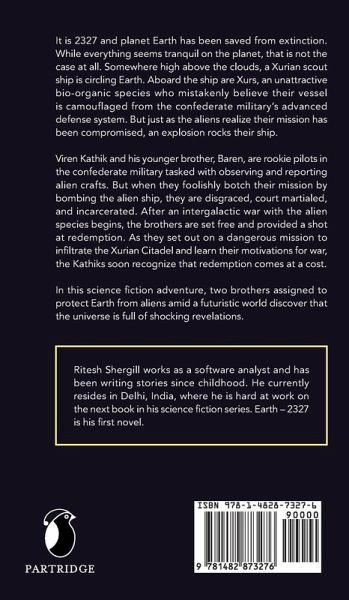 It is 2327 and planet Earth has been saved from extinction. While everything seems tranquil on the planet, that is not the case at all. Somewhere high above the clouds, a Xurian scout ship is circling Earth. Aboard the ship are Xurs, an unattractive bio-organic species who mistakenly believe their vessel is camouflaged from the confederate military's advanced defense system. But just as the aliens realize their mission has been compromised, an explosion rocks their ship. Viren Kathik and his younger brother, Baren, are rookie pilots in the confederate military tasked with observing and reporting alien crafts. But when they foolishly botch their mission by bombing the alien ship, they are disgraced, court martialed, and incarcerated. After an intergalactic war with the alien species begins, the brothers are set free and provided a shot at redemption. As they set out on a dangerous mission to infiltrate the Xurian Citadel and learn their motivations for war, the Kathiks soon recognize that redemption comes at a cost. In this science fiction adventure, two brothers assigned to protect Earth from aliens amid a futuristic world discover that the universe is full of shocking revelations.
