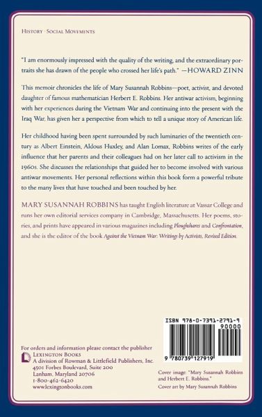 This memoir chronicles the life of Mary Susannah Robbins_poet, activist, and devoted daughter of famous mathematician Herbert Robbins. Her antiwar activism, beginning with her experiences during the Vietnam War and continuing into the present with the Iraq War, has given her a perspective from which to tell a unique story of American life.