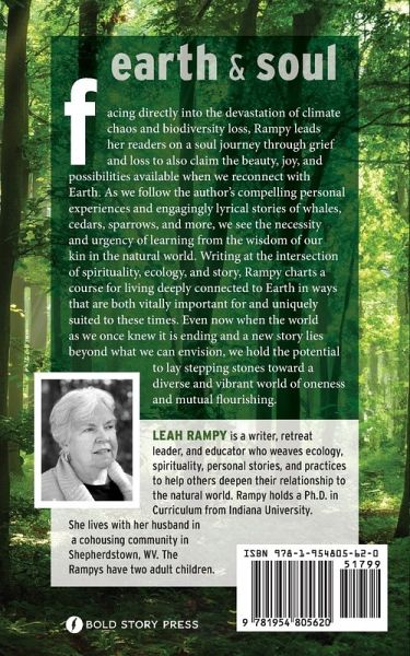 Facing directly into the devastation of climate chaos and biodiversity loss, Rampy leads her readers on a soul journey through grief and loss to also claim the beauty, joy and possibilities available when we reconnect with Earth. As we follow the author's compelling personal experiences and engagingly lyrical stories of whales, cedars, sparrows, and more, we see the necessity and urgency of learning from the wisdom of our kin in the natural world. Writing at the intersection of spirituality, ecology, and story, Rampy charts a course for living deeply connected to Earth in ways that are both vitally important for and uniquely suited to these times. Even now when the world as we once knew it is ending and a new story lies beyond what we can envision, we hold the potential to lay stepping stones toward a diverse and vibrant world of oneness and mutual flourishing.