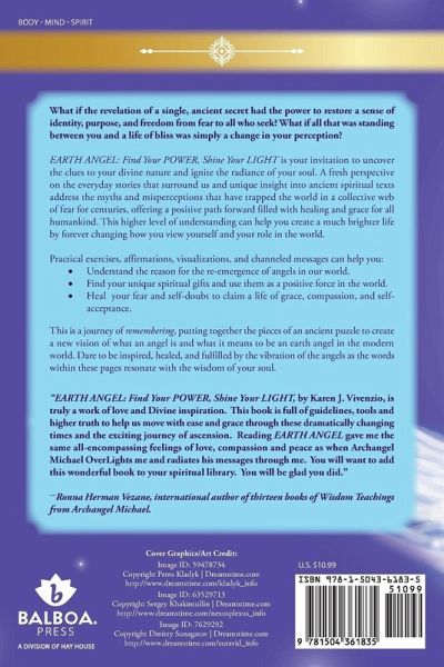 What if the revelation of a single, ancient secret had the power to restore a sense of identity, purpose, and freedom from fear to all who seek? What if all that was standing between you and a life of bliss was simply a change in your perception? EARTH ANGEL: Find Your Power, Shine Your Light is your invitation to uncover the clues to your divine nature and ignite the radiance of your soul. A fresh perspective on the everyday stories that surround us and unique insight into ancient spiritual texts address the myths and misperceptions that have trapped the world in a collective web of fear for centuries, offering a positive path forward filled with healing and grace for all humankind. This higher level of understanding can help you create a much brighter life by forever changing how you view yourself and your role in the world. Practical exercises, affirmations, visualizations, and channeled messages can help you: Understand the reason for the re-emergence of angels in our world. Find your unique spiritual gifts and use them as a positive force in the world. Heal your fear and self-doubt to claim a life of grace, compassion, and self-acceptance. This is a journey of remembering, putting together the pieces of an ancient puzzle to create a new vision of what an angel is and what it means to be an earth angel in the modern world. Dare to be inspired, healed, and fulfilled by the vibration of the angels as the words within these pages resonate with the wisdom of your soul.