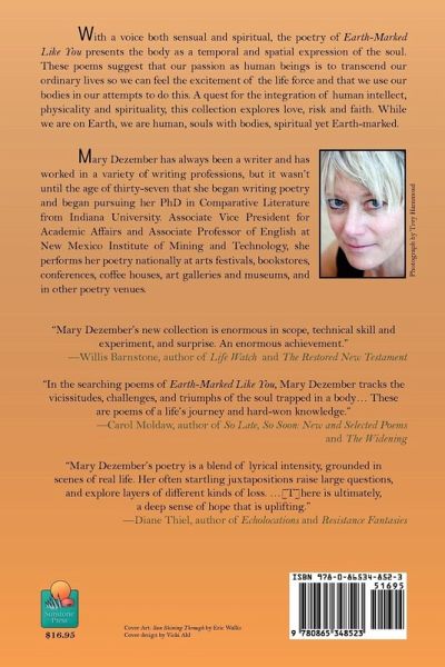 With a voice both sensual and spiritual, the poetry of "Earth-Marked Like You" presents the body as a temporal and spatial expression of the soul. These poems suggest that our passion as human beings is to transcend our ordinary lives so we can feel the excitement of the life force and that we use our bodies in our attempts to do this. A quest for the integration of human intellect, physicality and spirituality, this collection explores love, risk and faith. While we are on Earth, we are human, souls with bodies, spiritual yet Earth-marked. MARY DEZEMBER has always been a writer and has worked in a variety of writing professions, but it wasn't until the age of thirty-seven that she began writing poetry and began pursuing her PhD in Comparative Literature from Indiana University. Associate Professor of English and Chair of the Department of Communication, Liberal Arts, and Social Sciences at New Mexico Institute of Mining and Technology, she performs her poetry nationally at arts festivals, bookstores, conferences, coffee houses, art galleries and museums, and in other poetry venues.