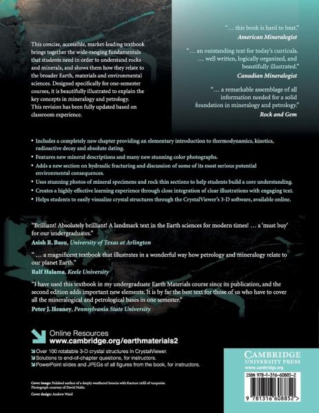 'Earth Materials is a magnificent textbook that illustrates in a wonderful way how petrology and mineralogy relate to our planet Earth, its formation and modification by igneous, metamorphic and sedimentary processes. Outstanding photographs and detailed thin section images are neatly combined with clear illustrations, fostering the link between observations and fundamental theoretical principles. A new section in the second edition about thermodynamics and kinetics nicely complements the thorough coverage of key concepts in petrology and mineralogy. The available online resources are an essential aid for teaching, and students will benefit from the review questions at the end of each chapter. Earth Materials is simply a great textbook, which I can highly recommend.' Ralf Halama, Keele University