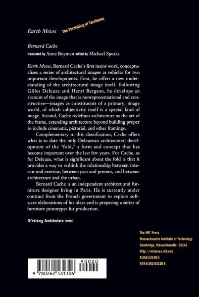 Earth Moves, Bernard Cache's first major work, conceptualizes a series of architectural images as vehicles for two important developments. First, he offers a new understanding of the architectural image itself. Following Gilles Deleuze and Henri Bergson, he develops an account of the image that is nonrepresentational and constructive—images as constituents of a primary, image world, of which subjectivity itself is a special kind of image. Second, Cache redefines architecture beyond building proper to include cinematic, pictoral, and other framings.Complementary to this classification, Cache offers what is to date the only Deleuzean architectural development of the "fold," a form and concept that has become important over the last few years. For Cache, as for Deleuze, what is significant about the fold is that it provides a way to rethink the relationship between interior and exterior, between past and present, and between architecture and the urban.